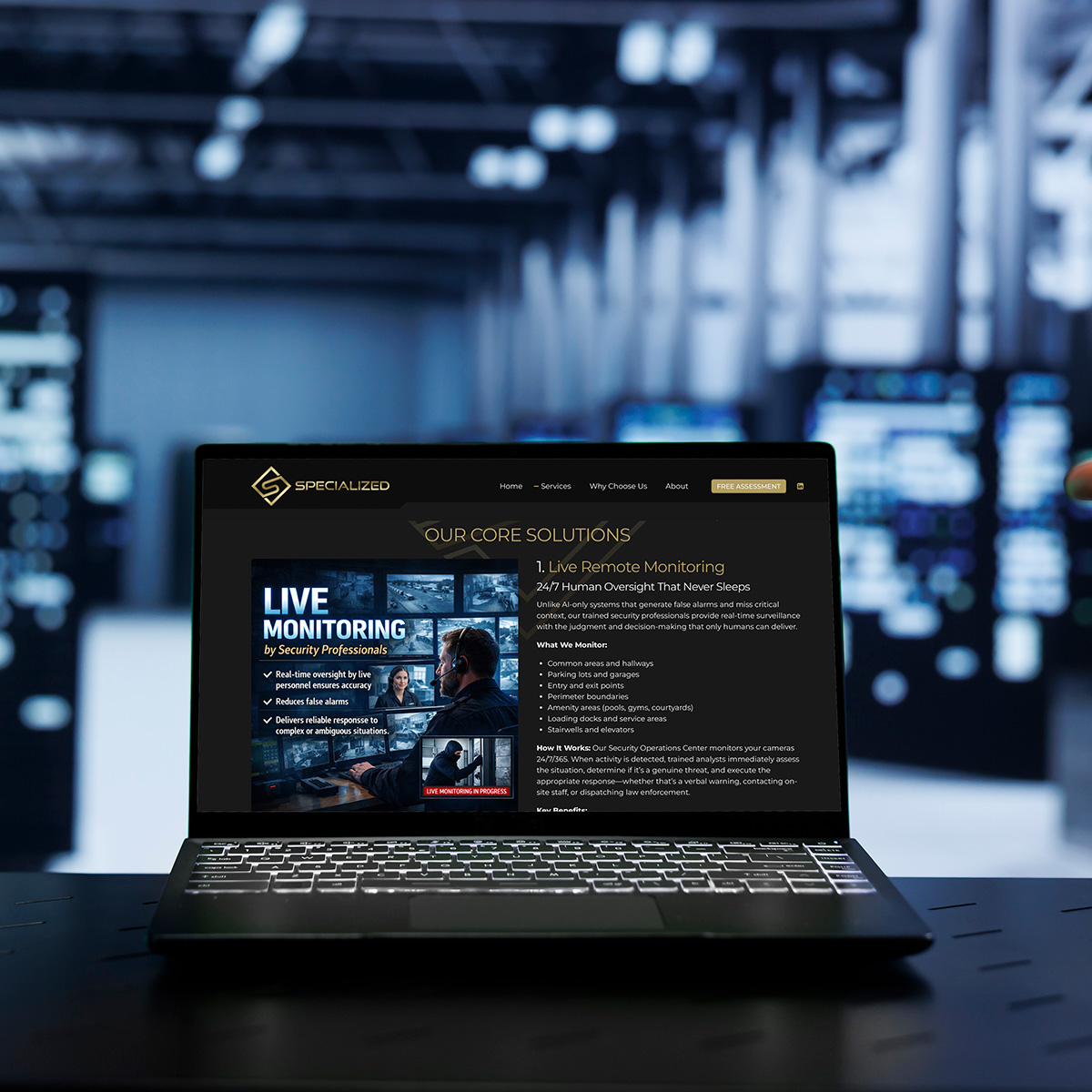 When Specialized Security Corporation came to us, they had a serious product and a forgettable web presence. They needed a site that could carry the weight of an enterprise B2B sales conversation — one that would speak to property managers, apartment complex owners, and real estate developers who were tired of being burned by AI-only security systems that cry wolf.